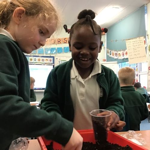 In Science, the children have been busy planting beans to help them learn more about how plants grow. They discovered that that all plants need sunlight, water, air and the right temperature in order to thrive. To test this, they set up an investigation comparing beans that have everything they need with beans that are missing one of these essentials. Over the next few weeks, the children will be observing closely to see what happens and learning how each condition affects the plant’s growth.