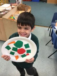 This half term Reception children found an enormous cabbage growing in the garden! This led us to our new story The Enormous Turnip! We have had lots of fun doing activities inspired by this story. We have learnt to tell it off by heart using a story map and actions to help us remember it we have learnt about harvest and found out all about where and how fruit and vegetables grow. We have enjoyed songs and stories linked to our theme. We have printed with vegetables and written shopping lists and recipes. We ended the half term making our own delicious healthy vegetable soup!
