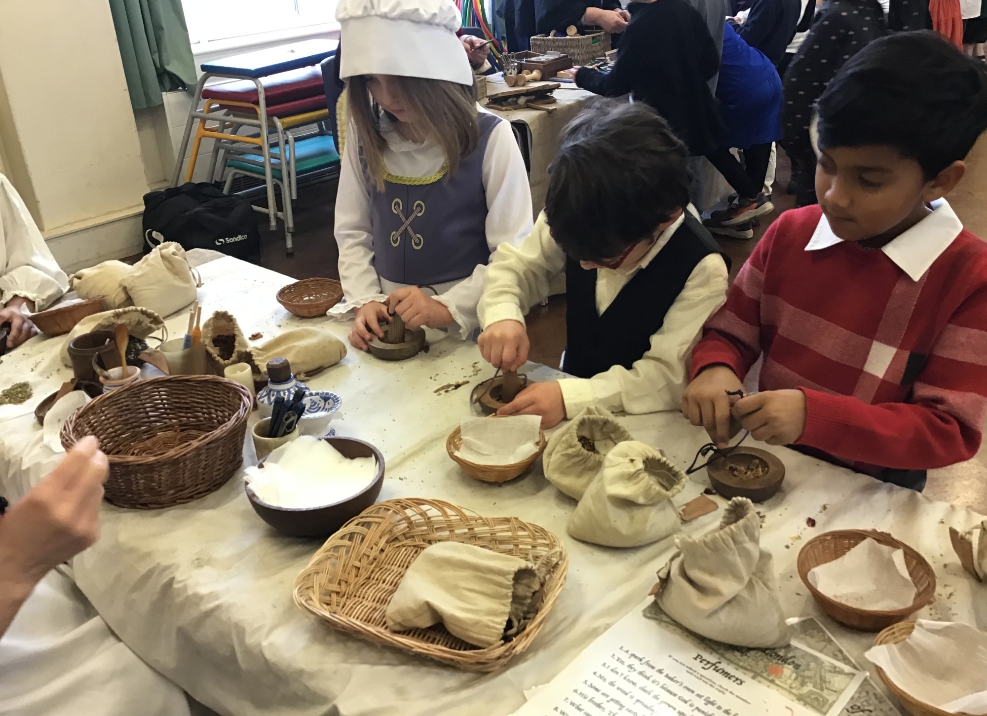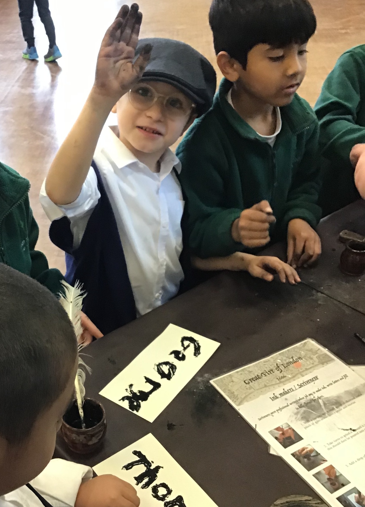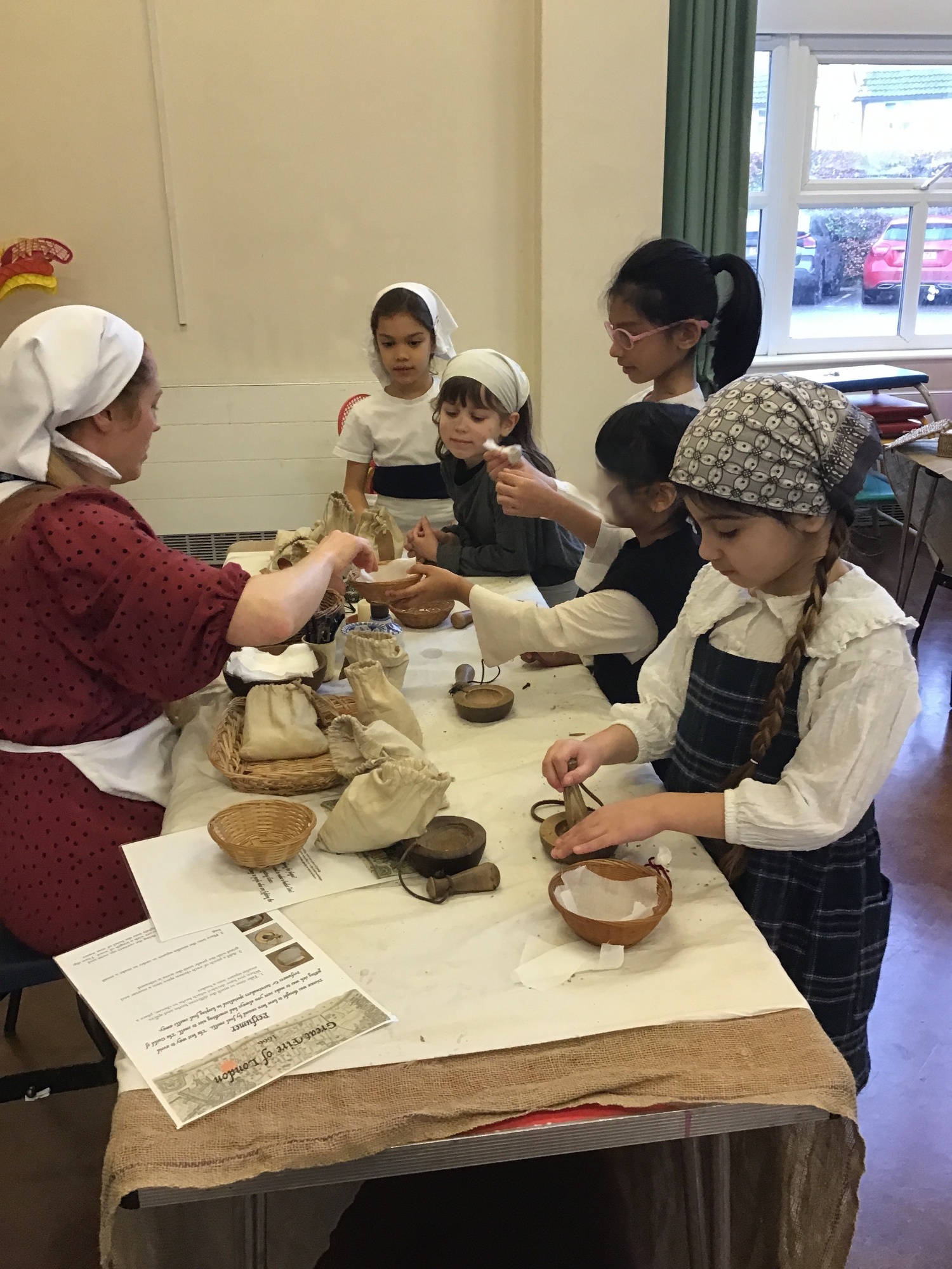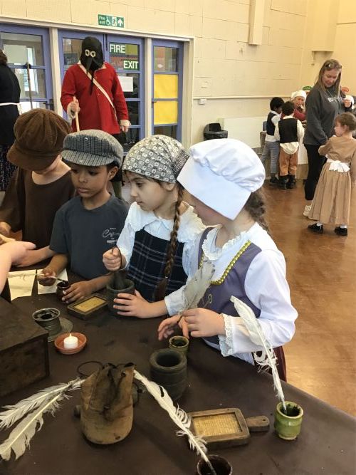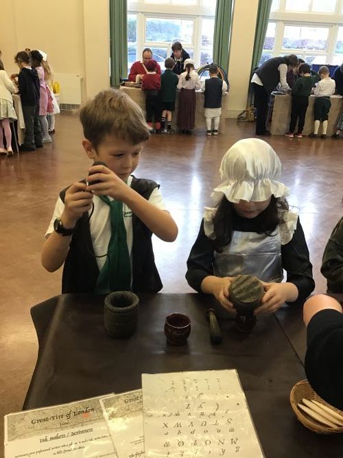 Year 2 had a fantastic time at their Great Fire of London workshop. The immersive day brought history to life as the children explored jobs from the past, including candle making, sewing, perfume making, weaving, being a scrivener (a hand-writer of letters and documents), and learning about a tanner who made leather from animal skins.