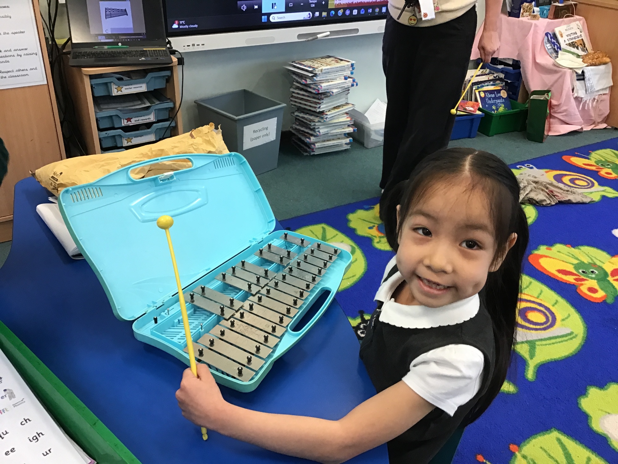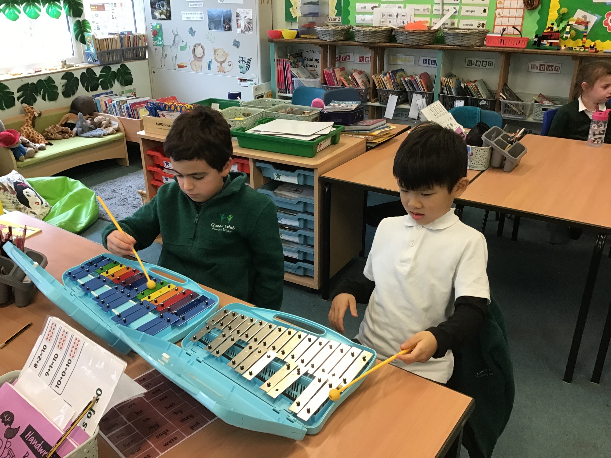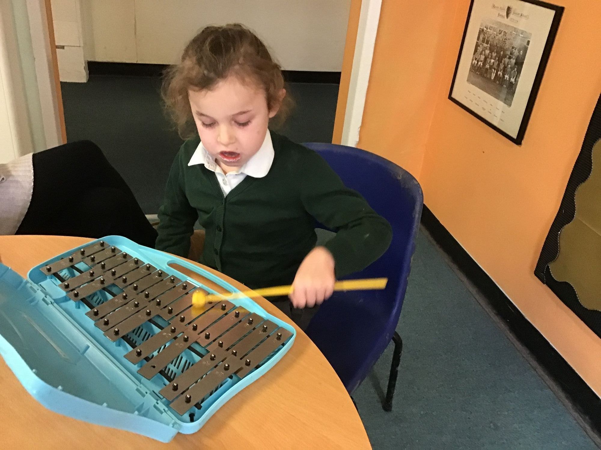In Music, Year 2 enjoyed playing glockenspiels along to the song Rainbows. They did an excellent job keeping in time and hitting the right notes, and it was wonderful to see them perform confidently as a group.