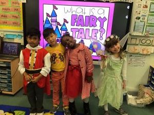 Year 2 had a fantastic start to their new topic with Fairy Tale Day. The children looked amazing dressed up as their favourite story characters. They explored what makes a fairy tale special, including good and bad characters, magical features like curses and spells, and familiar phrases such as “Once upon a time” and “Happily ever after.”