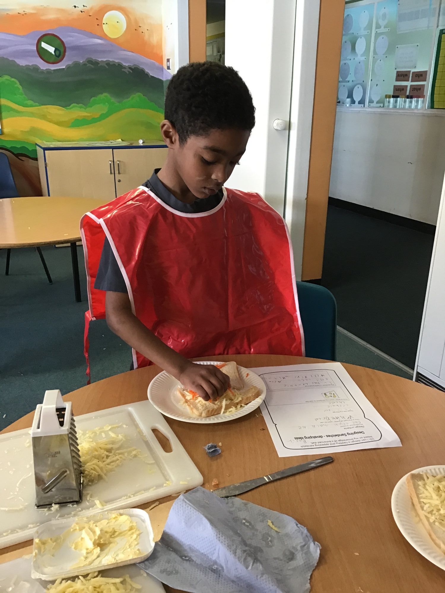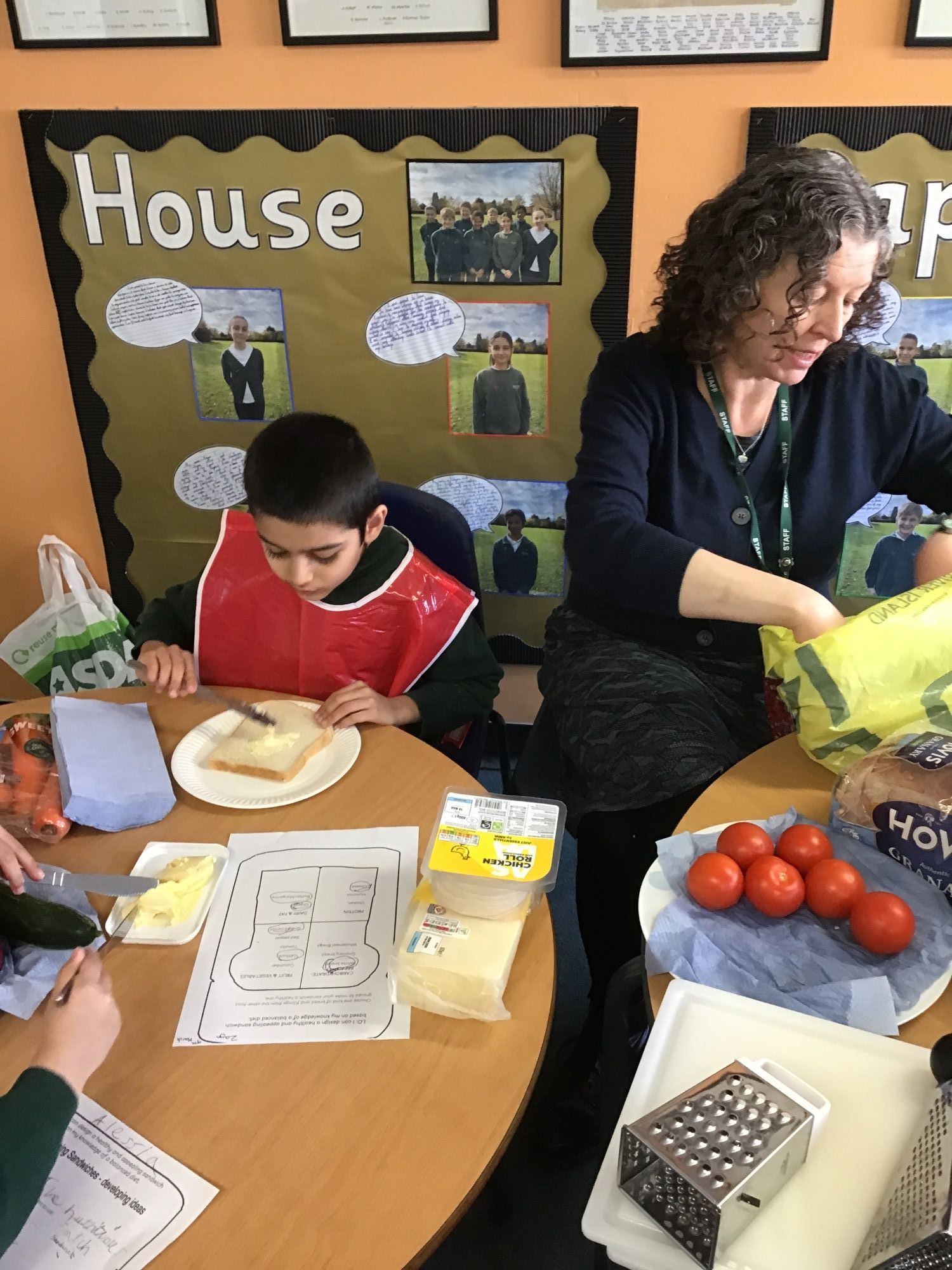 In Year 2, the children enjoyed designing and making their own healthy sandwiches. They explored a variety of fillings, tasting different options before deciding what to include in their creations. The children practised important food preparation skills, safely using equipment such as peelers, graters, chopping boards and serrated knives. The results were delicious, and everyone was proud of their healthy and creative sandwiches.