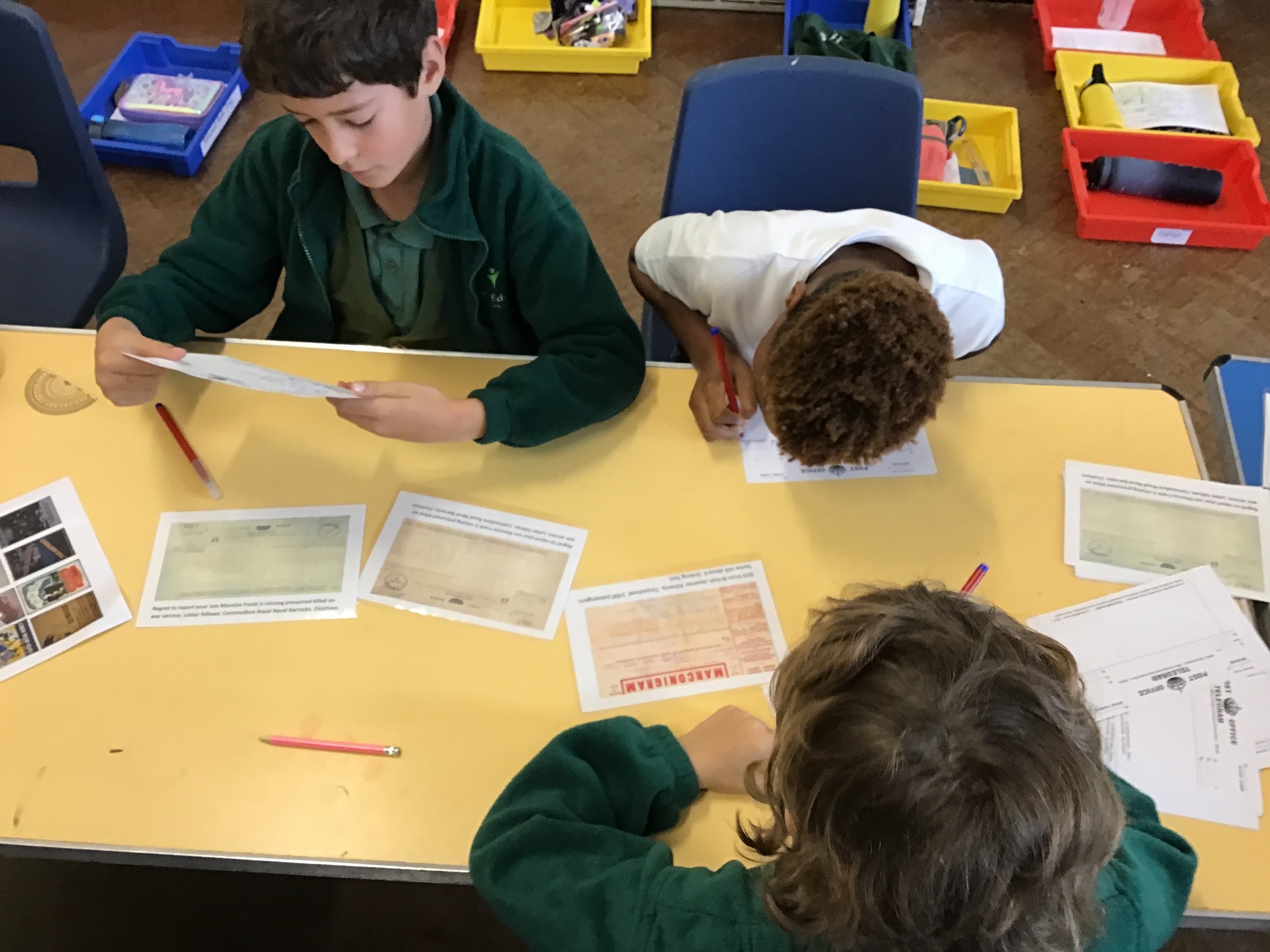 On Tuesday 21st October, the children had the opportunity to experience life in WW2. They cracked Morse coded messages, created telegrams to send home to their families, decided what to pack in their suitcase, created propaganda posters and built Spitfire planes to defend Britain. They also ate like evacuees; creating honey balls and jam sandwiches with rationed ingredients and then enjoying their spoils in the afternoon. A ‘making do and mend’ attitude was prevalent with the children, especially when sewing fabrics to create bunting; celebrating the end of the war and the hard working soldiers returning home! Thanks to Miss Hayden and volunteers for making it a day to remember!