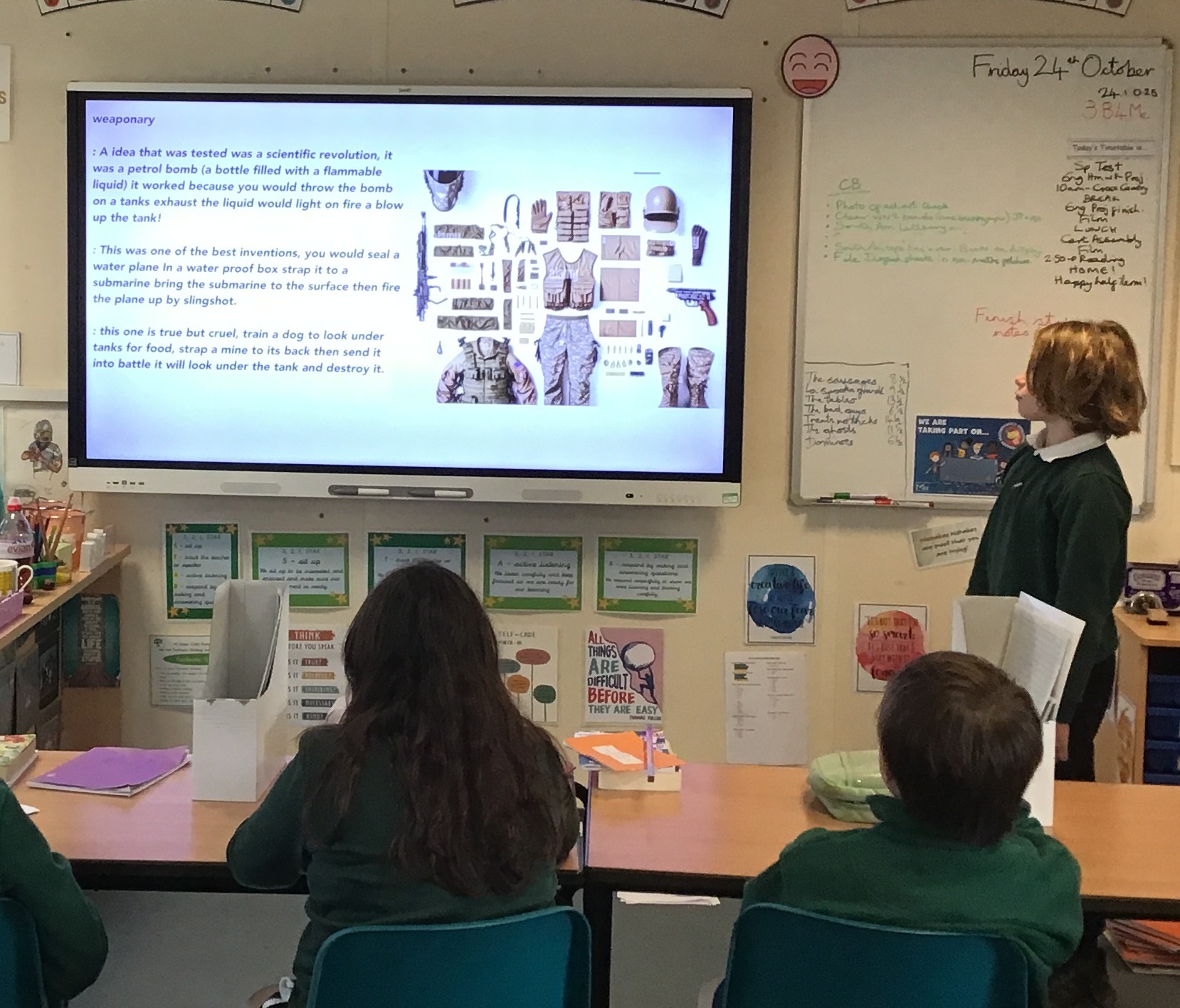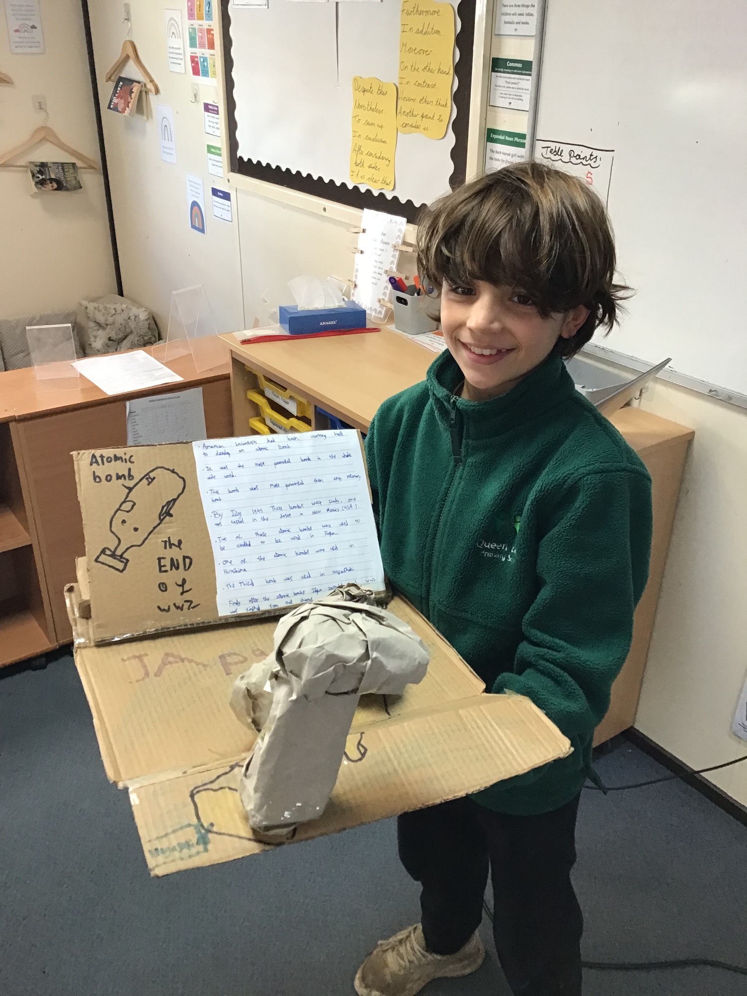 To complete our learning, we offered pupils an opportunity to craft, write and present anything they wanted about World War II. There were some astounding projects – Year 6 pupils had to be brave to read them out loud in the time allowed and we were able to listen to everyone else too! Numerous topics were covered such as D-Day, aeroplanes, tanks, rationing, submarines and even nursing heroes. Many children had original ideas that were explained perfectly. Congratulations to all!