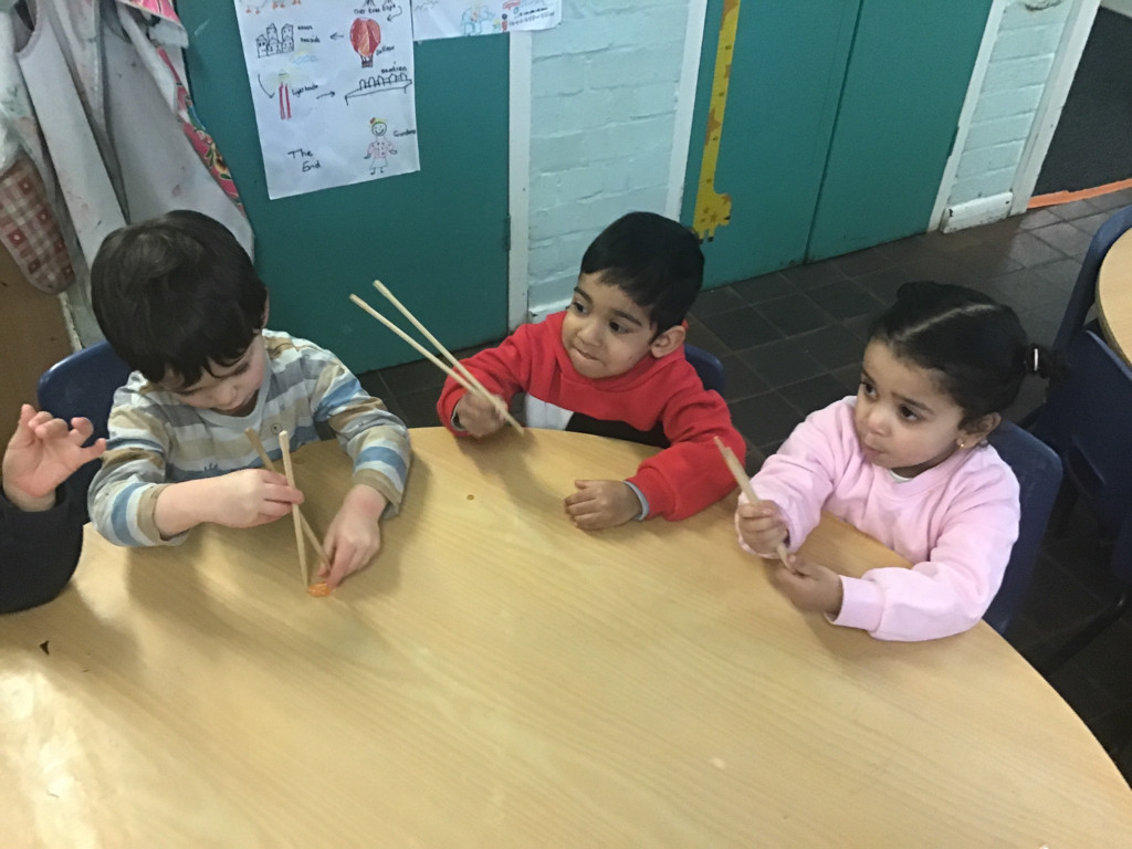 Children in Bumblebee class have enjoyed learning about the Lunar New Year. They have made decorations, shared stories and information books, used chopsticks to eat orange segments and watched a dragon dance. The children played drums and cymbals and took turns to take part in our own dragon dance at nursery. We were also very grateful to welcome one of our parents who came to talk to the children about their own Lunar New Year celebrations.